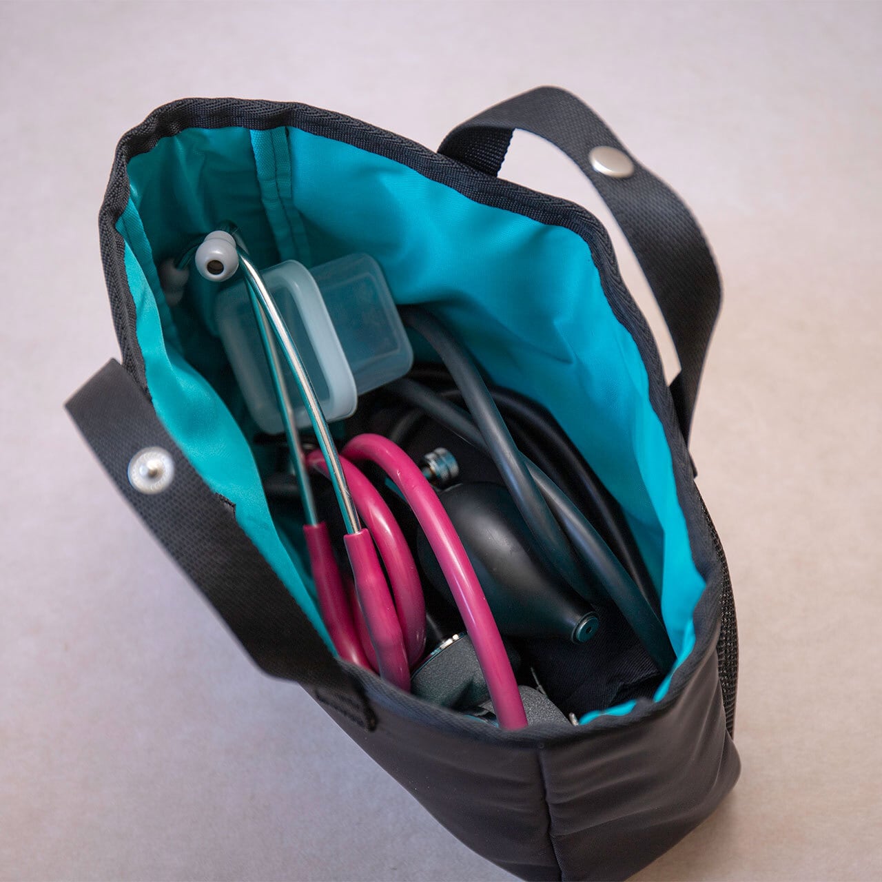 訪問先でまず取り出すバイタルセットをまとめて収納できるバッグインバッグ付属です。リュックやトートにもそのままスッポリ入ります。 バイタルセットが入ったバッグインバッグだけを持ち出して訪問することもできる便利なアイテムです。